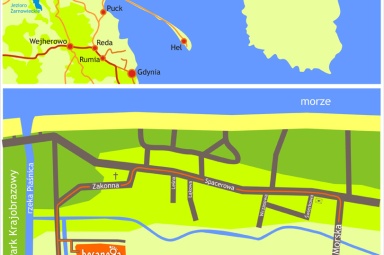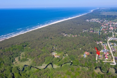 Półożone ośrodka w spokojnej części Dębek, niedaleko Parku Krajobrazowego i rzeki Piaśnicy, około 500 metrów od plaży.